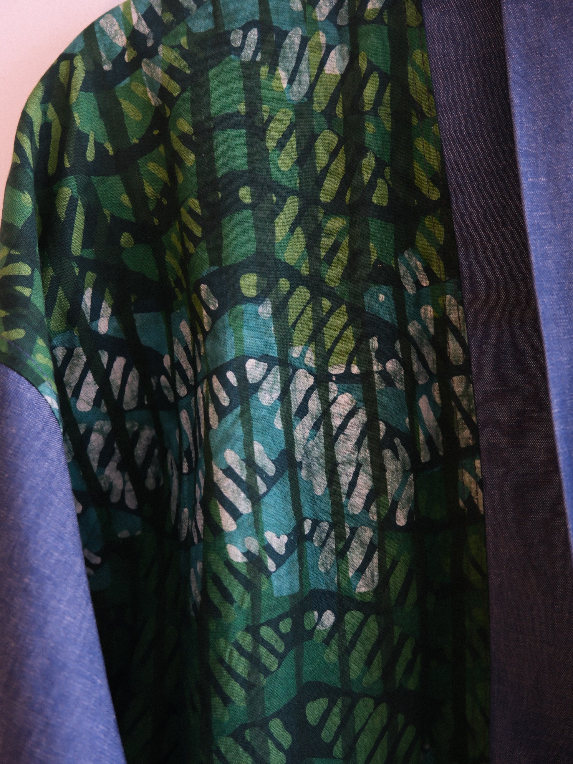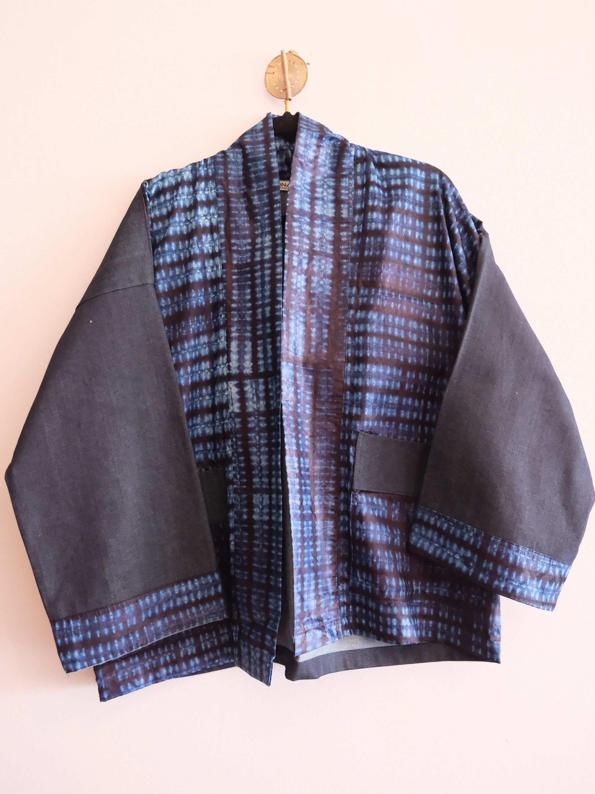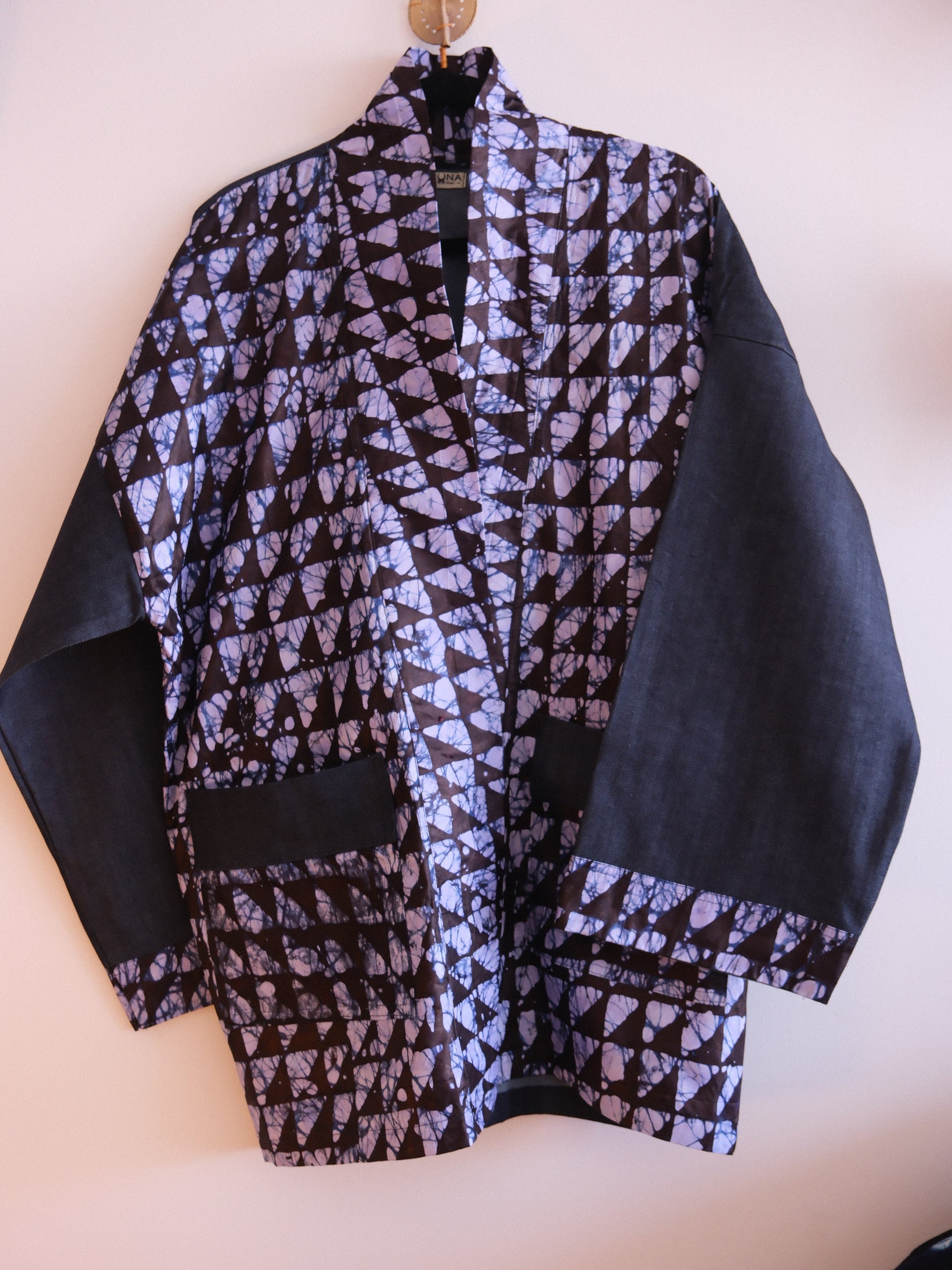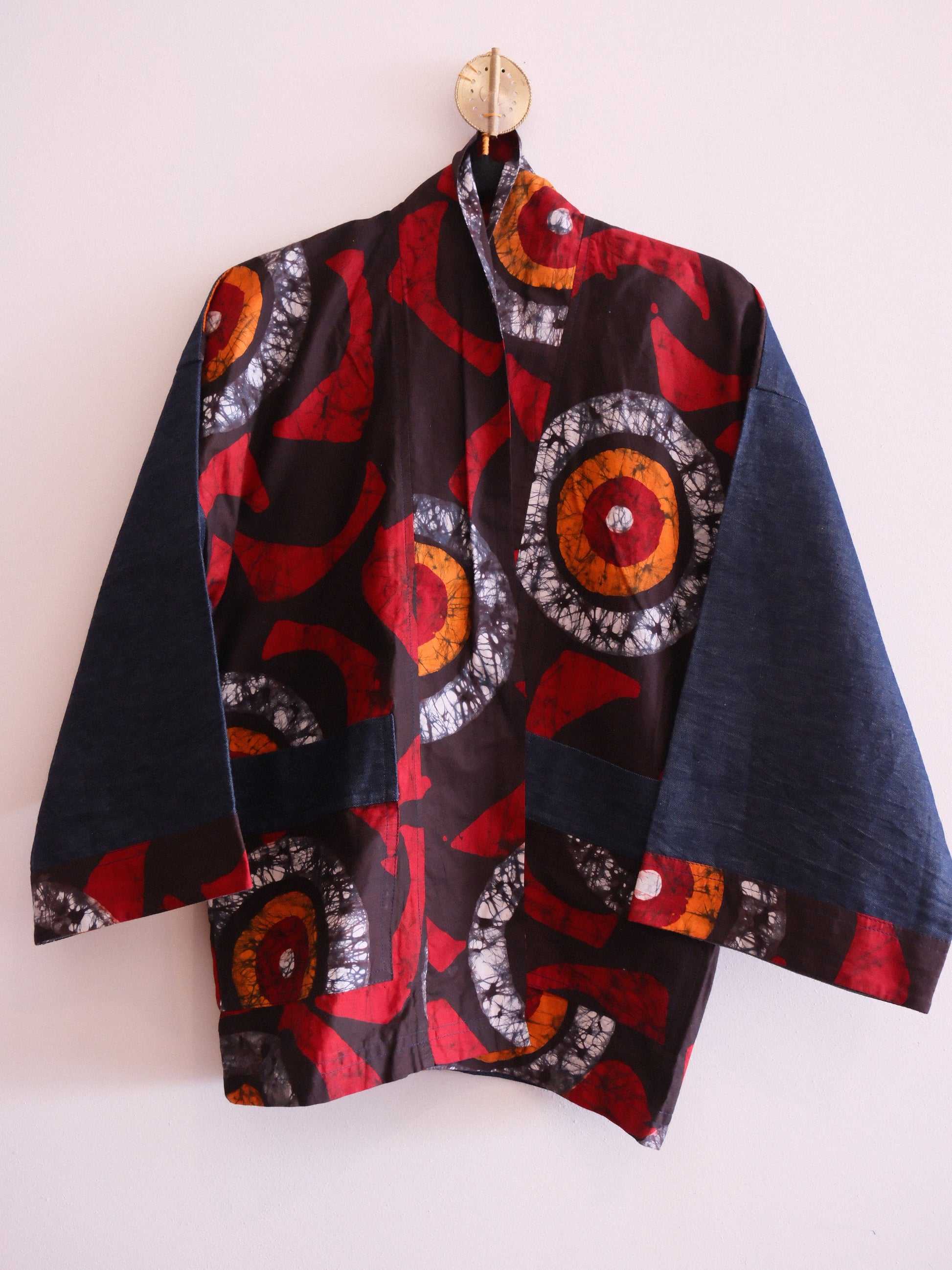 El batik de estos kimonos fueron fabricados artesanalmente en Cotonou, Benín, en los talleres de Afrofutur y en Guinea, Conakry.