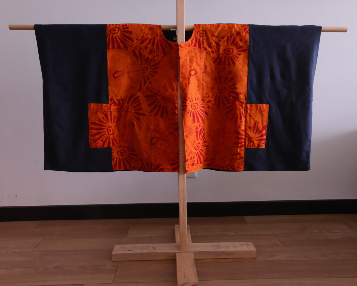 El Kimono Batik Neba combina sutilmente el diseño contemporáneo con el textil tradicional africano. Su tela, un batik hecho a mano en Benín, es fruto de un saber ancestral transmitido de generación en generación. Asociado con una suave mezcla de lino y algodón, da vida a una prenda fluida, estructurada y profundamente singular.