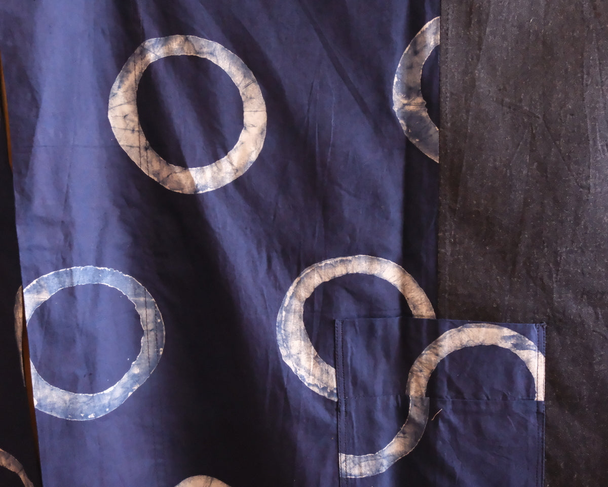 Composición: mezclilla ligera, batik artesanal de Benín