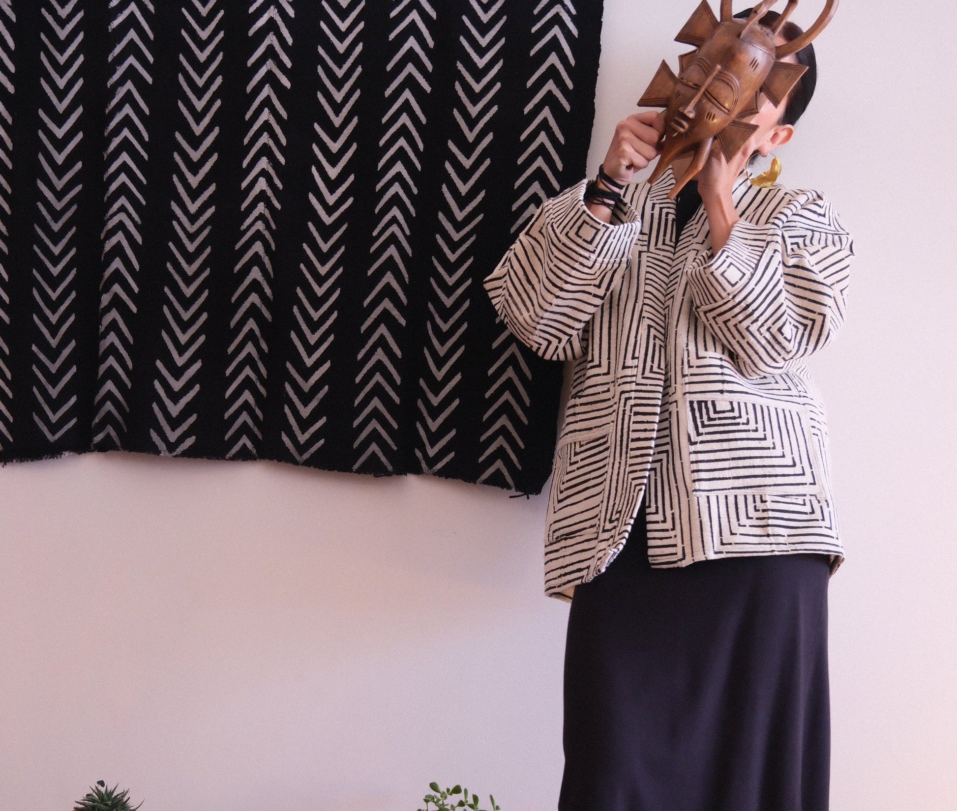 Kimono hecho con el textil bogolán. Lienzo fabricado à mano en el taller de Issa Toure en Burkina Faso.
