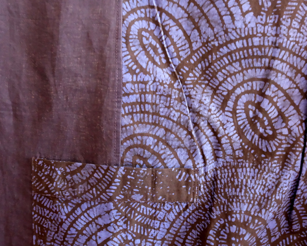 Composición: lino, algodón, batik artesanal de Benín