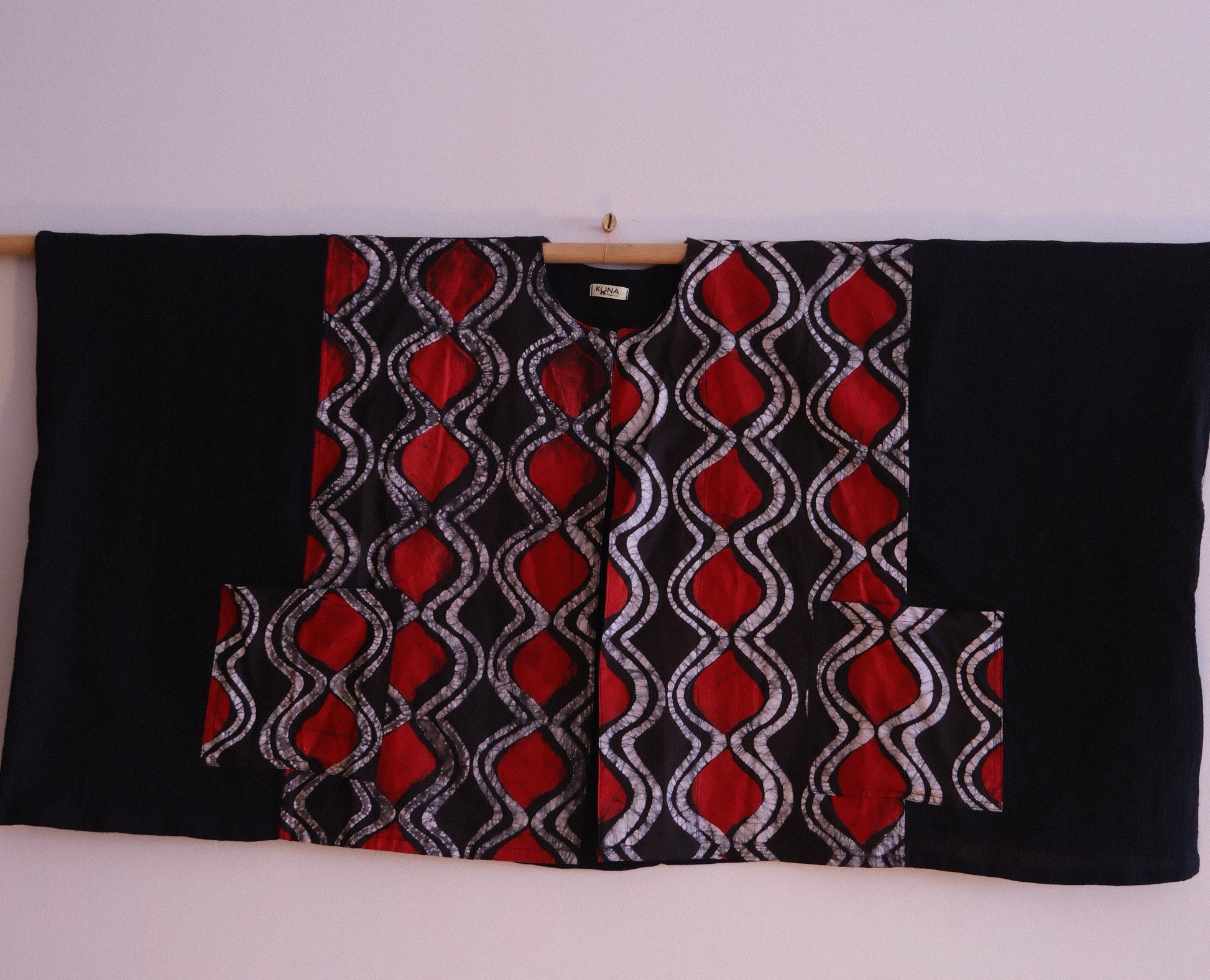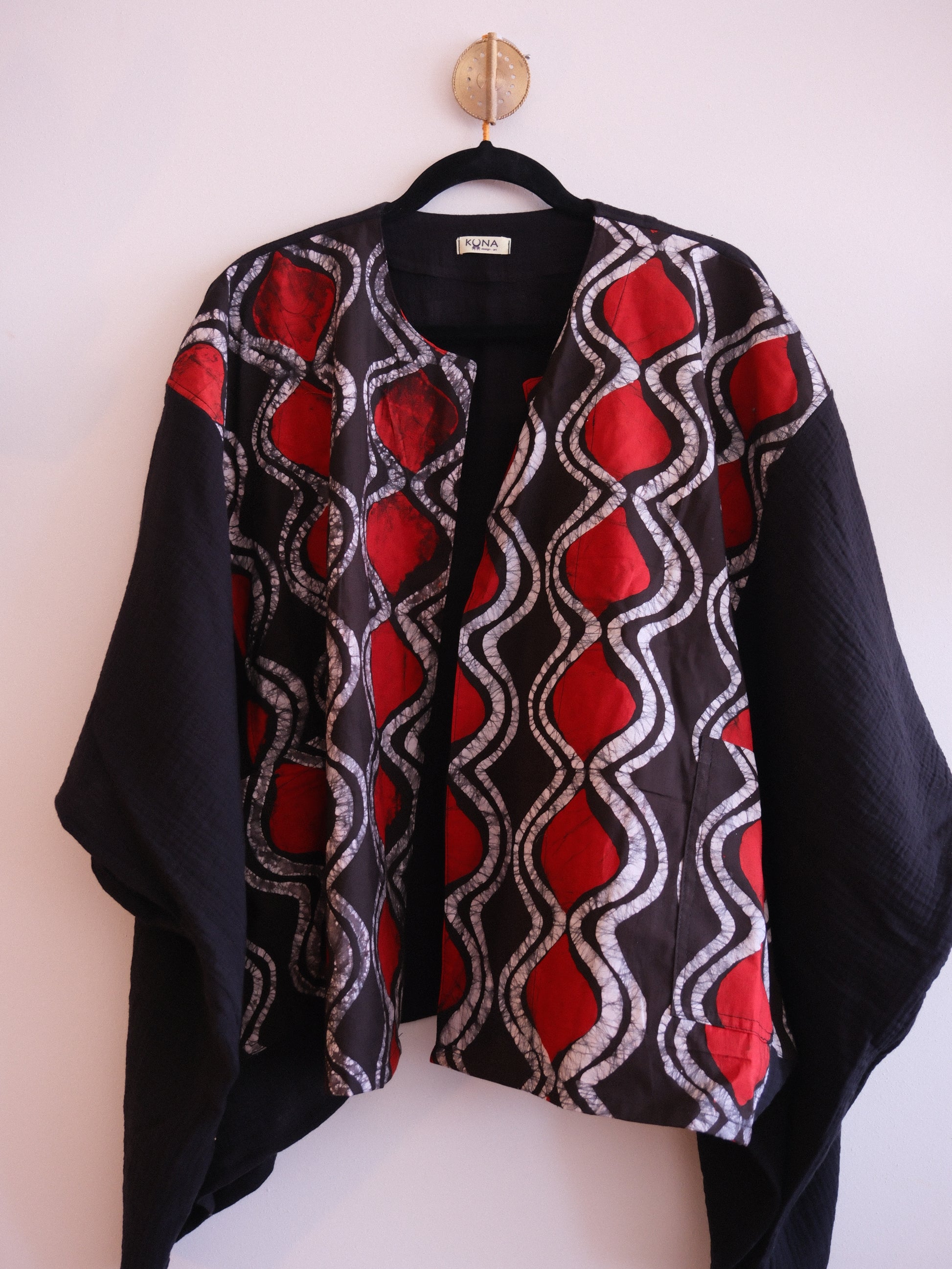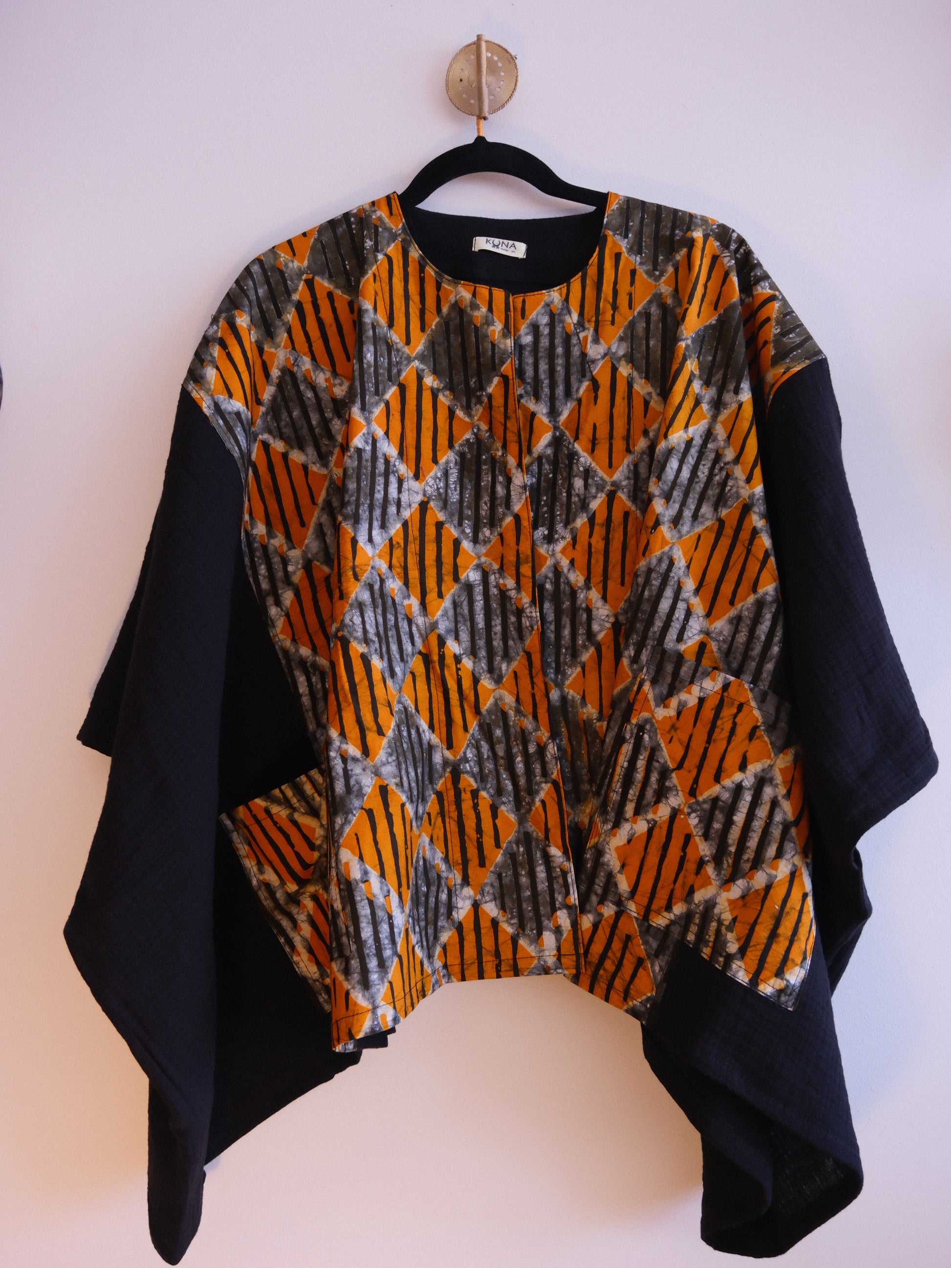 Kimono rectangular confeccionado con batik fabricado artesanalmente en Benín, Africa.