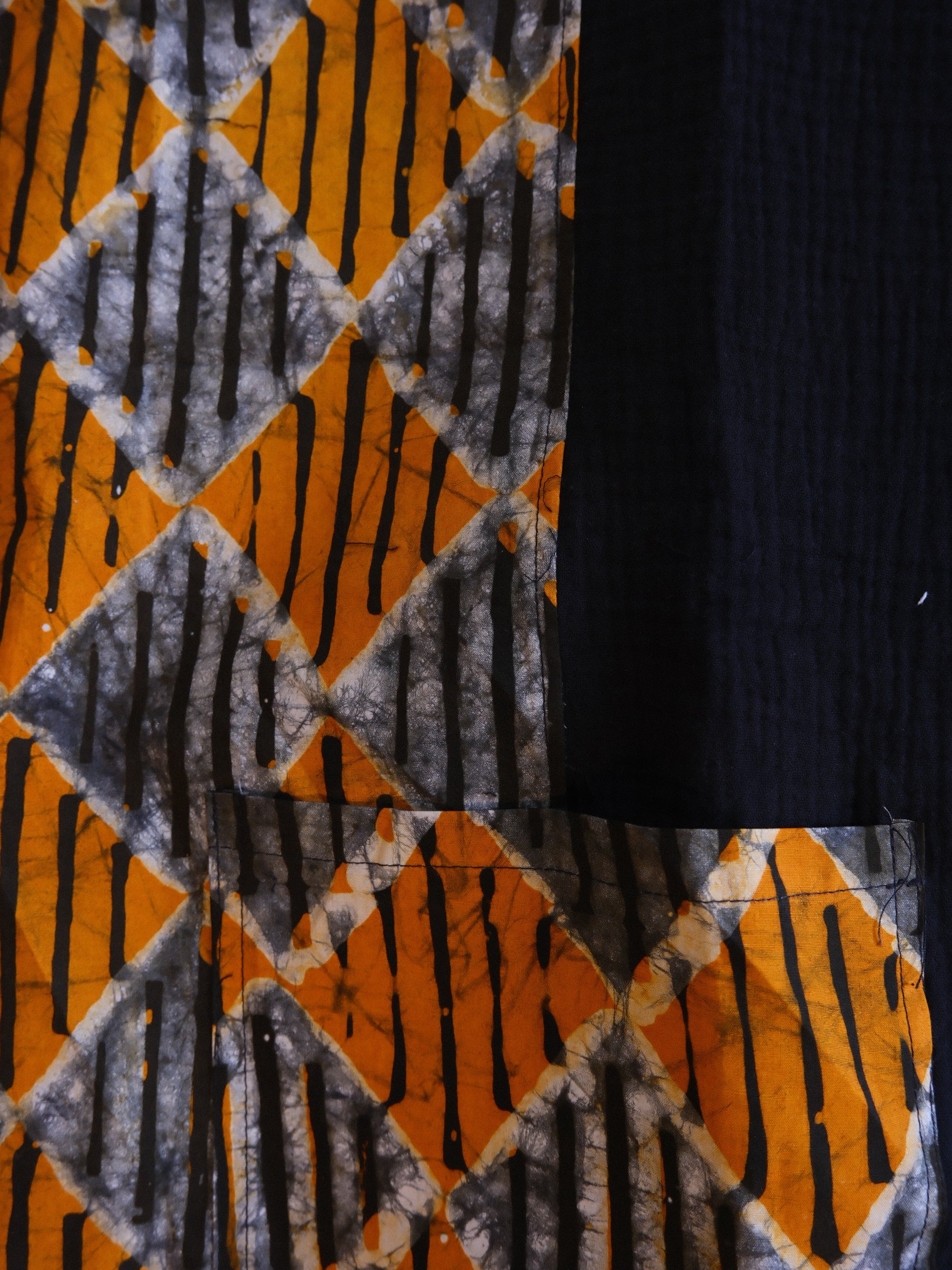El batik está combinado con algodón industrial de tacto muy suave.